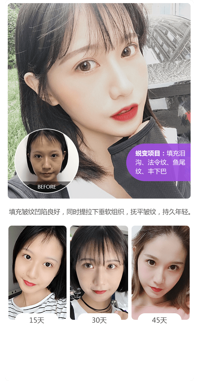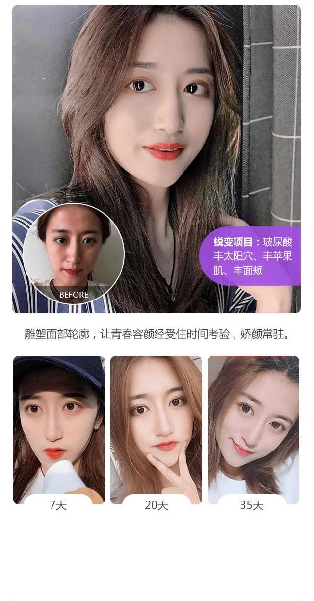 美贝尔“定位、定量、定层”注射法,根据求美者面部具体情况,准确衡量进针位置,以保注射效果更大化。